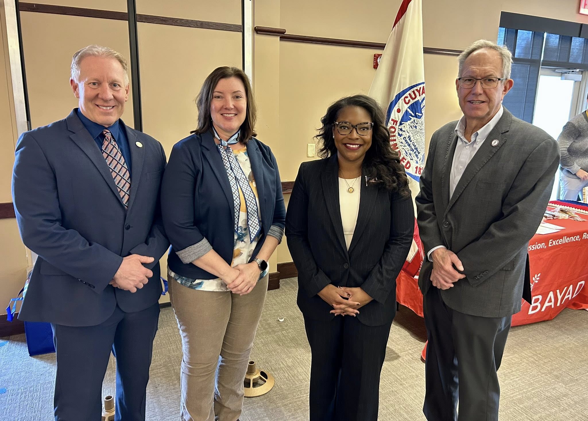 Mayor Don Walters of Cuyahoga Falls, Mayor John Pribonic of Stow, and U.S. Congresswoman Emilia Sykes presented pins to all veterans in attendance during a dedicated pinning ceremony.